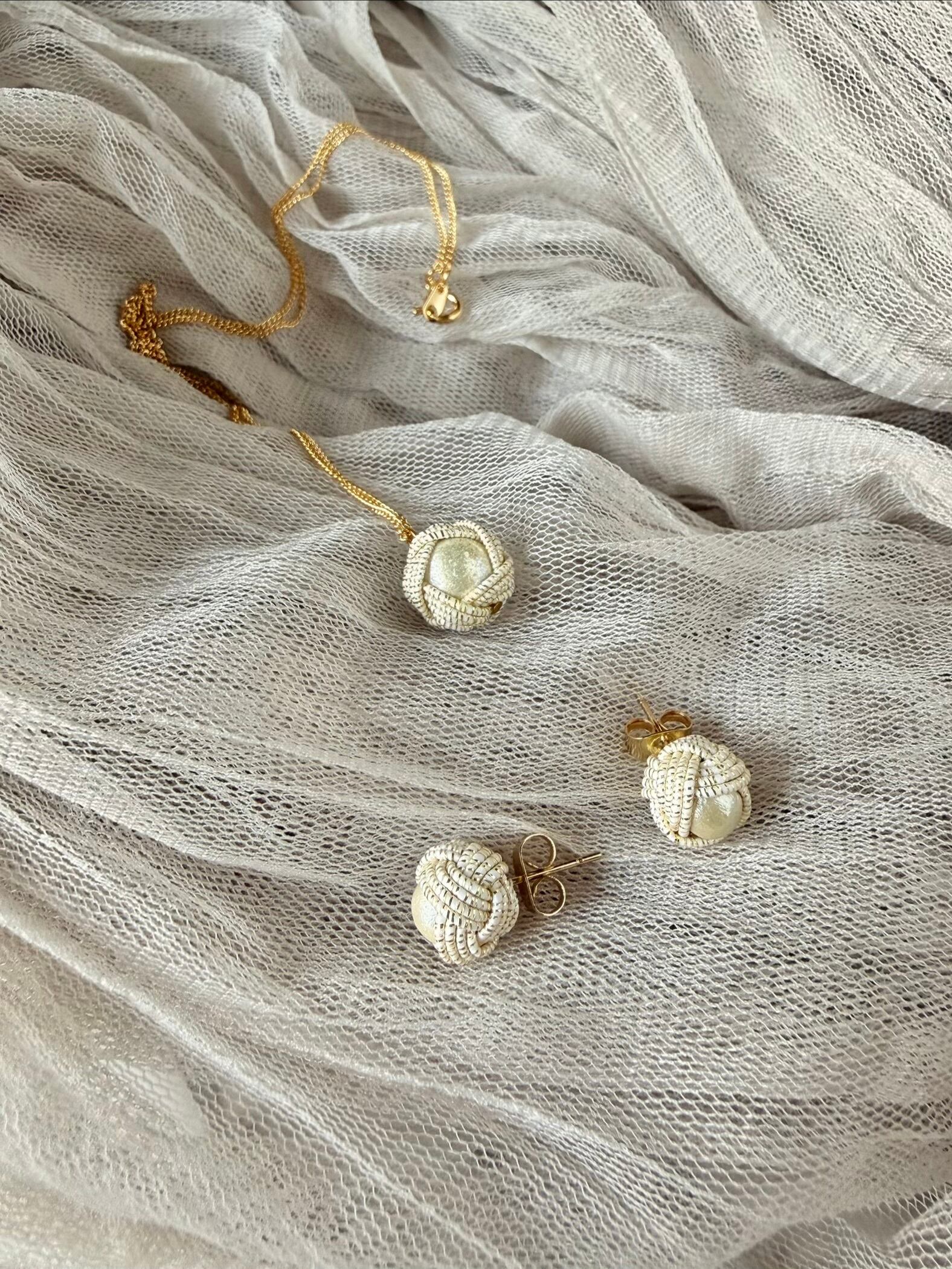 パール ネックレスは、シンプルなパールが、更に水引を纏うことで、より上品なパールの輝きを演出し、特別な日のお洒落を引き立てます。